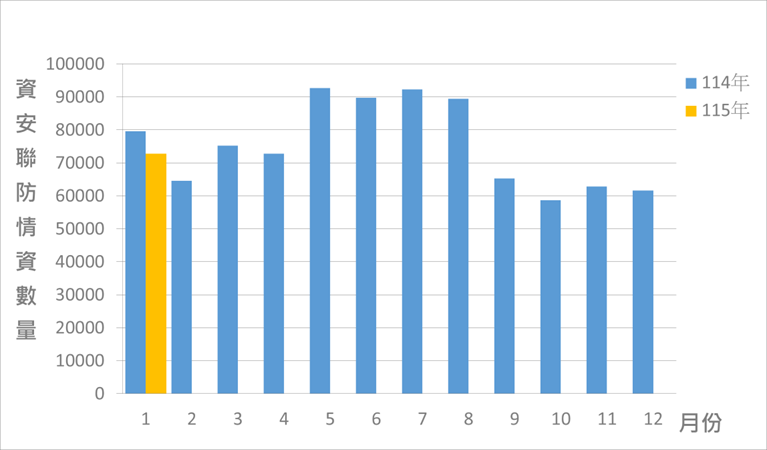 本月蒐整政府機關資安聯防情資共7萬2,743件(增加1萬1,163件),分析可辨識的威脅種類,第1名為資訊蒐集類(41%),主要是透過掃描、探測及社交工程等攻擊手法取得資訊;其次為入侵嘗試類(24%),主要係嘗試入侵未經授權的主機;以及入侵攻擊類(17%),大多是系統遭未經授權存取或取得系統/使用者權限。統計近1年情資數量分布,詳見圖1。