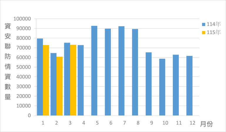 本月蒐整政府機關資安聯防情資共7萬3,093件(較上月增加1萬2,329件),分析可辨識的威脅種類,第1名為資訊蒐集類(49%),主要是透過掃描、探測及社交工程等攻擊手法取得資訊;其次為入侵嘗試類(24%),主要係嘗試入侵未經授權的主機;以及入侵攻擊類(11%),大多是系統遭未經授權存取或取得系統/使用者權限。統計近1年情資數量分布,詳見圖1。