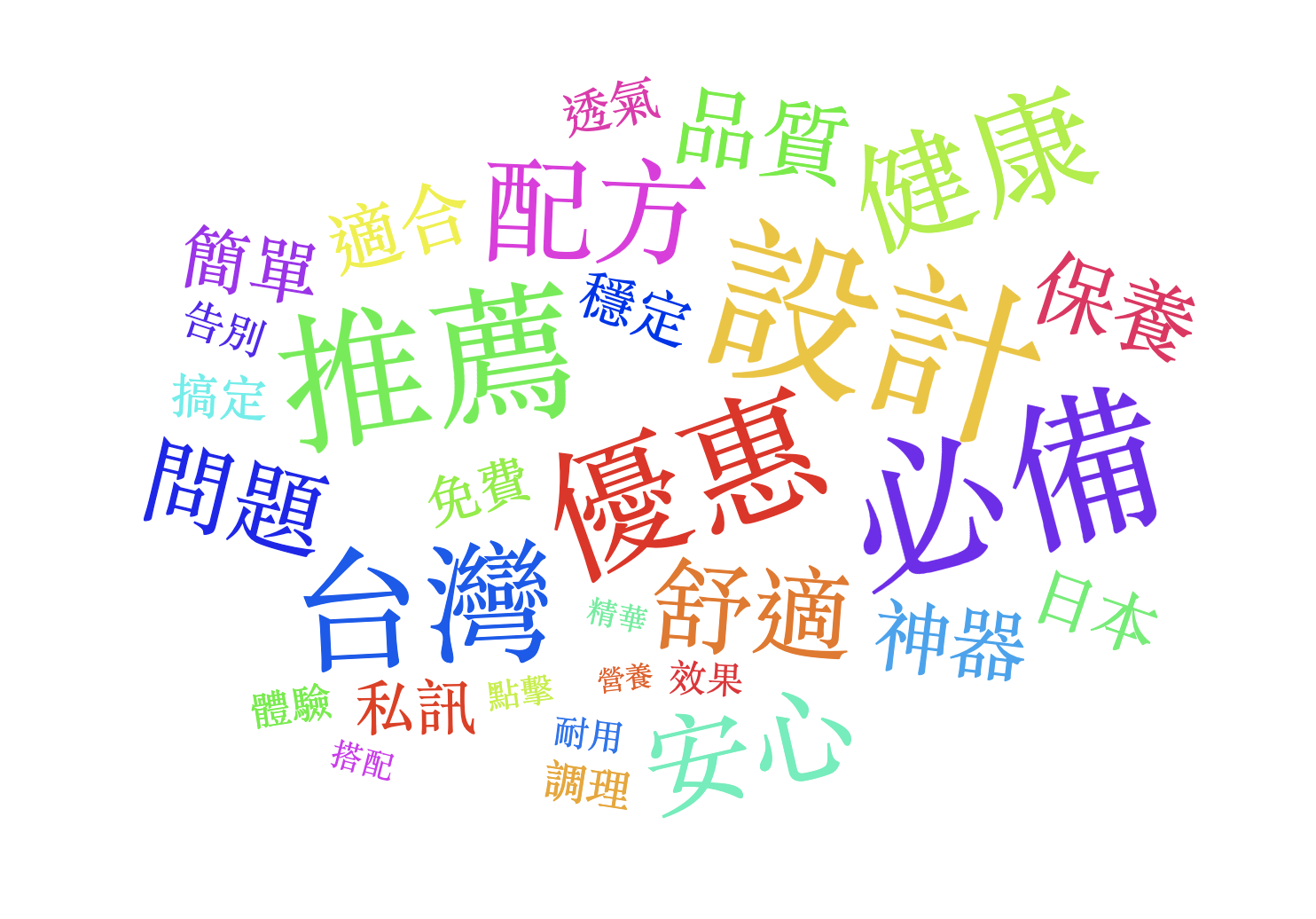 本週(03/21~03/27)Top 關鍵字主軸轉向「設計/必備/推薦/台灣/優惠」,並搭配「神器/配方/安心/健康/問題/舒適/保養/私訊/升級」等字眼;就排名前段來看,內容明顯集中在口腔清潔、夏季穿搭與痠痛舒緩,再往後延伸到護眼保健、泌尿調理、足貼、痔瘡膏、車用配件與私訊型服飾代購,同時也夾帶命理分析、債務整合與分期課程等高風險導流。常見手法大致不變:先用「台灣熱銷/醫師推薦/快速見效/買一送一/限量優惠/官方正品」營造可信感 → 再透過短網址、私訊、留言、填表或客服諮詢把人導出平台 → 最後走向站外下單、蒐集個資,或進一步推銷貸款、課程與其他高風險服務。