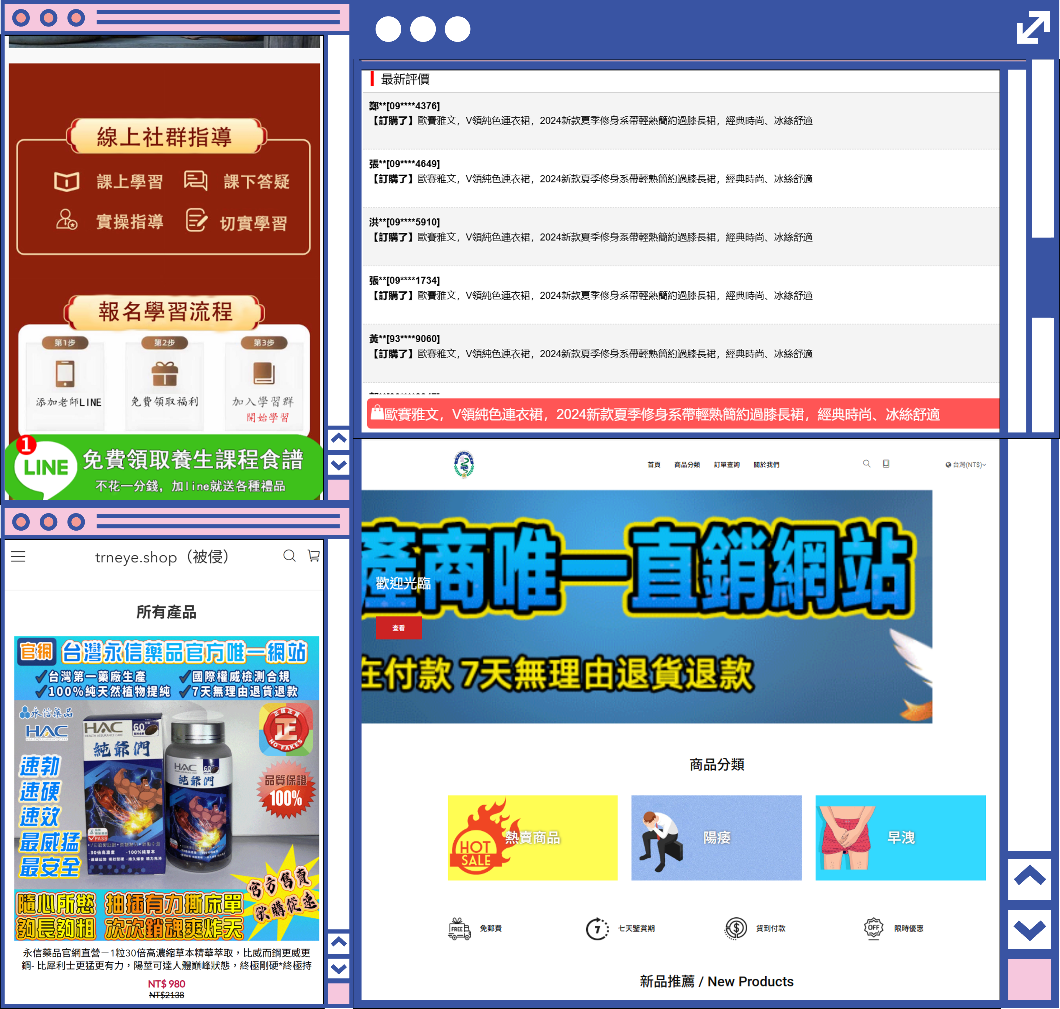在 11 月 22 日至 11 月 28 日期間,電商暨高風險網頁聯防通報平臺偵測到多個假冒網域,常見手法包含以簡體夾雜不自然的文字打造假電商頁面誤導民眾,或仿製官方網站介面誘騙使用者輸入帳密與支付資料,也有以名人背書與假品牌形象販售仿冒品的詐欺模式。平臺已通報TWNIC協助阻攔,提醒大家下單前先確認網站真實性,避免個資與金流外洩。🦾🔏