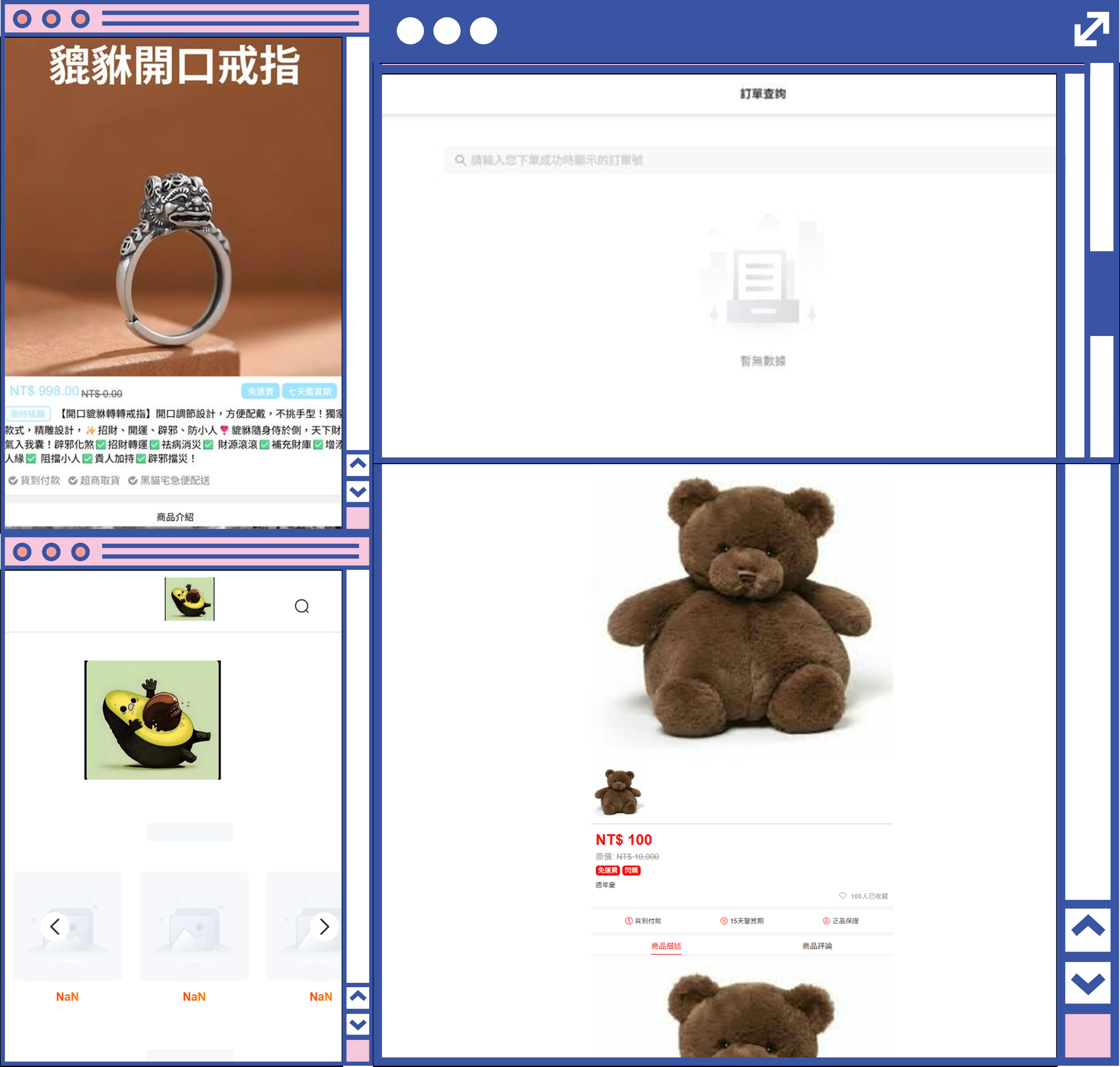 🛠️簡陋可疑網站:部分可疑購物網站整體設計粗糙,商品頁面內容簡略,甚至連基本圖片、規格或說明都未提供,顯示網站並非正常營運架構。這類網站常以快速架設為目的,交易保障與售後服務幾乎不存在,消費者一旦付款,往往難以追蹤後續狀況。