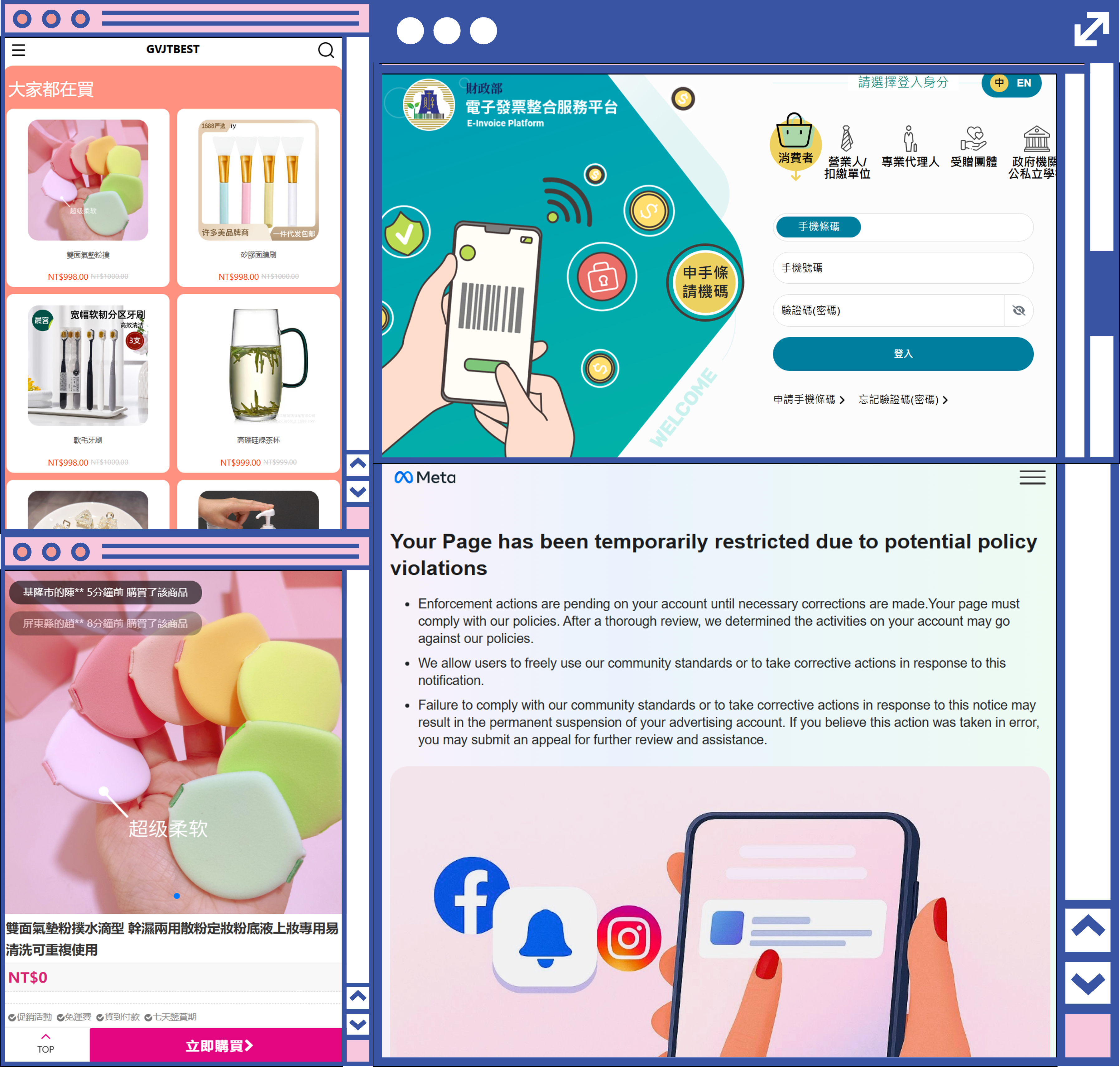 瀏覽網站時請多加留意,若出現電子發票驗證/設定頁面連結、異常登入提醒頁面,或商品價格前後不一致等情況,皆可能為詐騙警訊。建議於操作前先確認網站來源與資訊正確性,避免輸入個資或進行交易,以降低風險。#防詐提醒 #釣魚網站 #帳密竊取 #價格異常 #可疑網站 #網購安全