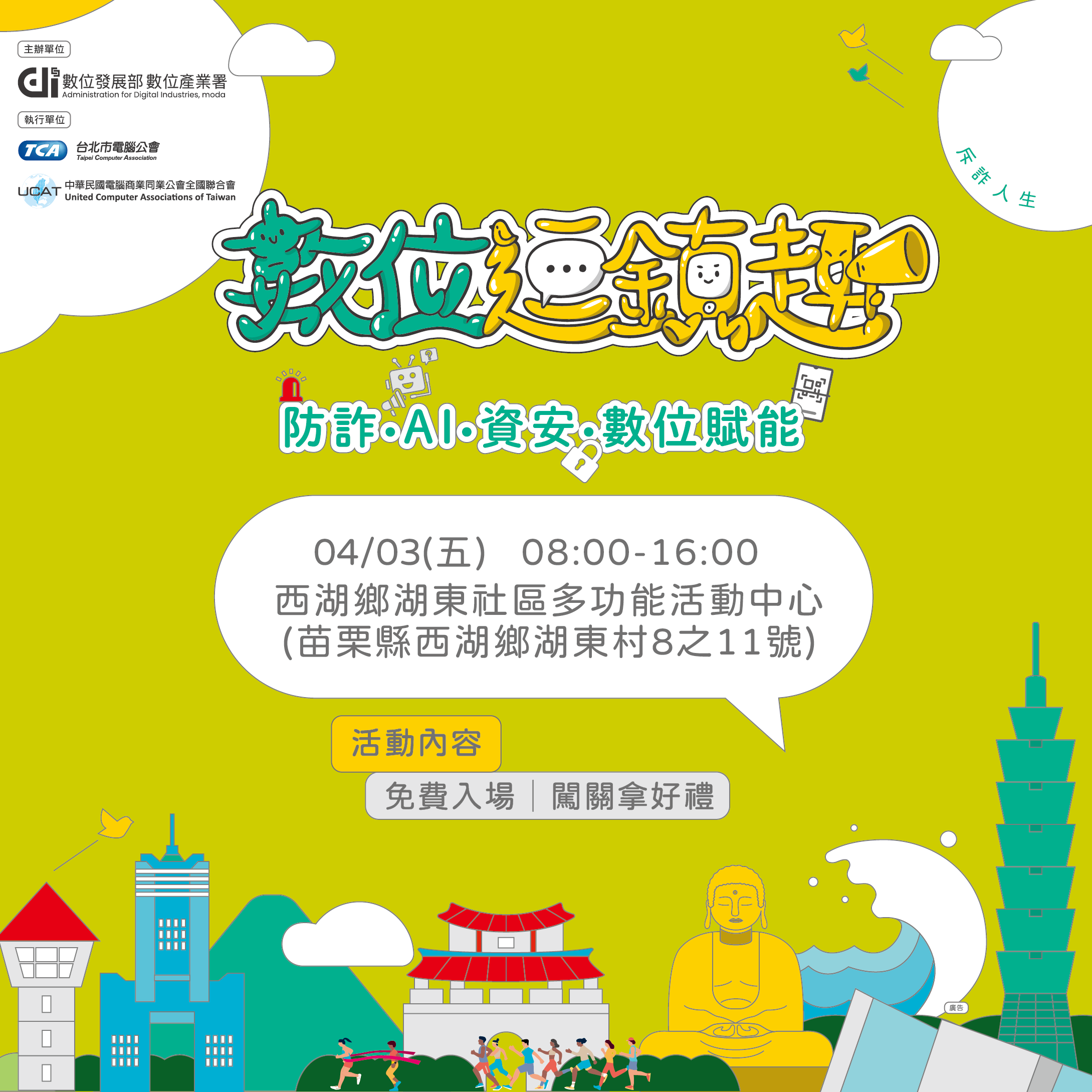 現場將透過闖關活動,把防詐教育、資安守護、集資平臺消費提醒、AI應用與網路學習等主題融入互動體驗,讓大家在生活中學習實用知識,提升日常的數位安全意識。