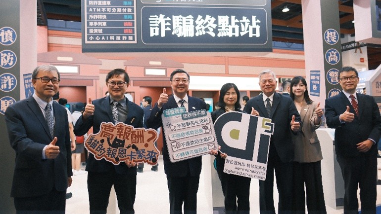 由本部數產署打造的主題館設有「m、o、d、a」四大區域,從智慧健康、數位信任及防詐、內容娛樂體驗及多元民生應用,展示AI及數位科技應用的多元面貌:「健康俱樂部 MediClub」聚焦智慧健康,透過AI輔助醫療決策與長照應用,讓醫療服務更即時普及;「數位守護站 OnGuard」展示防詐與數位信任技術,包括電子簽章、身份驗證與網路詐騙廣告防治,強化全民數位信任與安全防護;「夢想遊樂場 DreamLand」結合互動科技,展出原創遊戲、沉浸式娛樂體驗,展現內容創新與娛樂產業的活力;「智慧新市集 AIVenue」則匯聚旅遊、客服、行銷等多元民生AI應用,展現AI如何推動產業升級與生活便利。此外,為了讓民眾以更貼近生活的方式學習防詐知識,本部數產署也設立「digi@斥詐人生:詐騙終點站」專區,打造沉浸式互動闖關體驗,期待民眾走進展區體驗寓教於樂的防詐旅程。