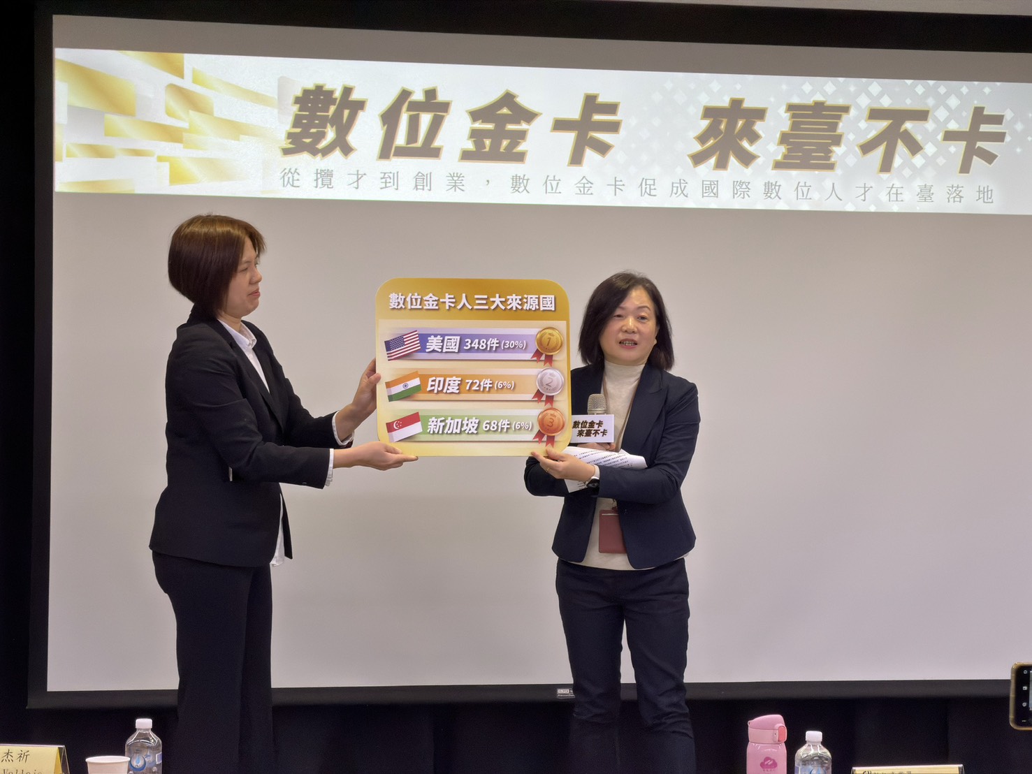 數位發展部23日上午於臺北 digiBlock C 數位創新基地舉辦「數位金卡‧來台不卡」記者會,宣布數位領域就業金卡(以下簡稱「數位金卡」)開辦近三年,核卡人數已突破千張。數發部表示,數位金卡已成為就業金卡12大領域中申請成長最快的類別之一,吸引超過千名外國數位專業人才來臺發展與合作。