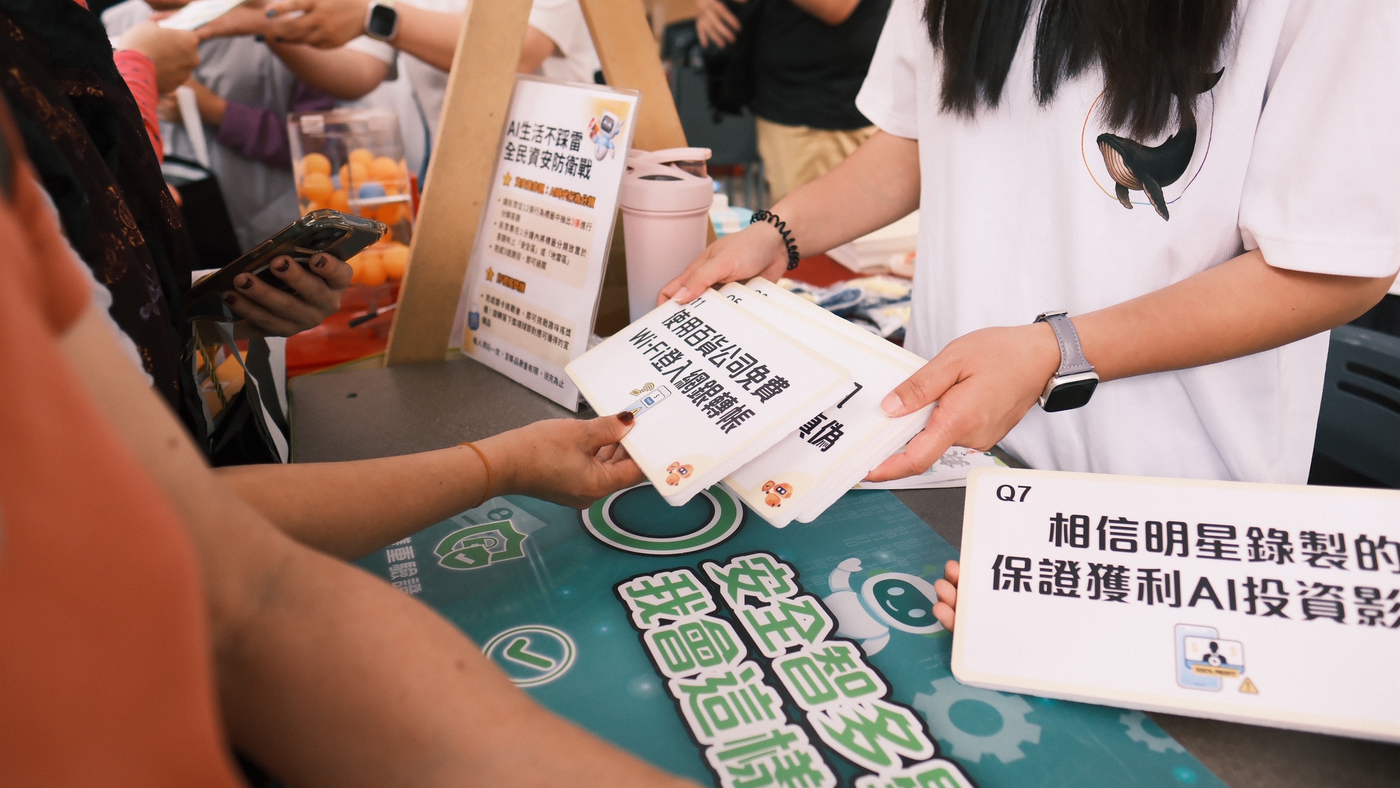 防詐宣導零距離,特別針對民眾最關心的詐騙議題,現場設置「digi@詐騙終點讚」攤位,並透過「緊急電話亭」互動遊戲,將各種常見詐騙態樣化為闖關題目,民眾在模擬真實來電的緊張情境中答題,能更深刻地加深對詐騙手法的印象。