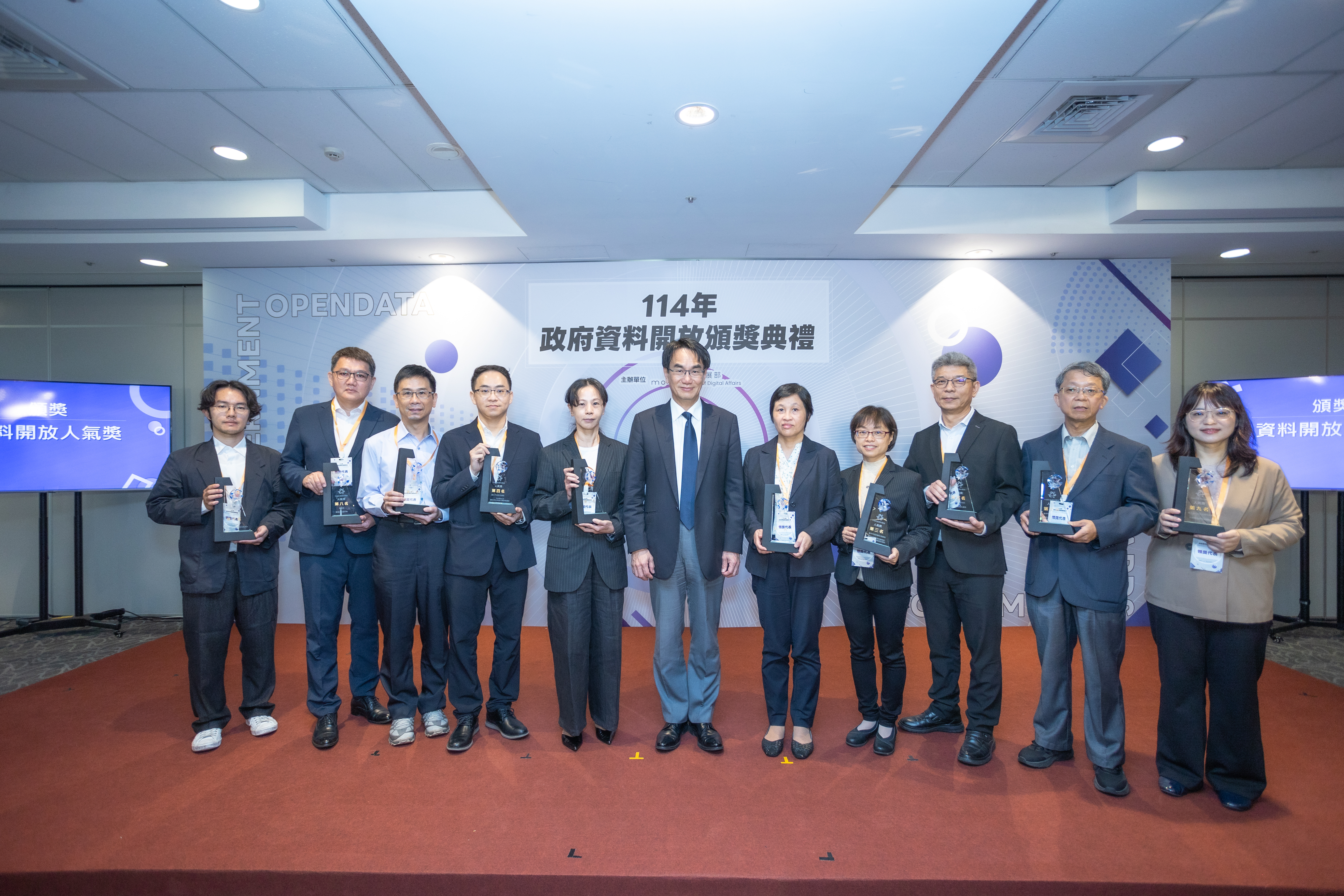 The Ministry of Digital Affairs held the “2025 Government Open Data Awards Ceremony” at the Taipei New Horizon Building this morning (1st) to recognize the outstanding achievements of central and local government agencies in open data, data governance, and innovative applications. Minister without Portfolio Wu Cheng-wen of the Executive Yuan and Minister Lin Yi-jing of the Ministry of Digital Affairs jointly attended the awards ceremony to recognize the long-term efforts of various government agencies and institutions in promoting open data. This year’s event also marked the debut of the “Outstanding Open Text Corpus Awards,” signaling that Taiwan’s government open data initiative has officially entered a new phase in supporting the development of artificial intelligence (AI).