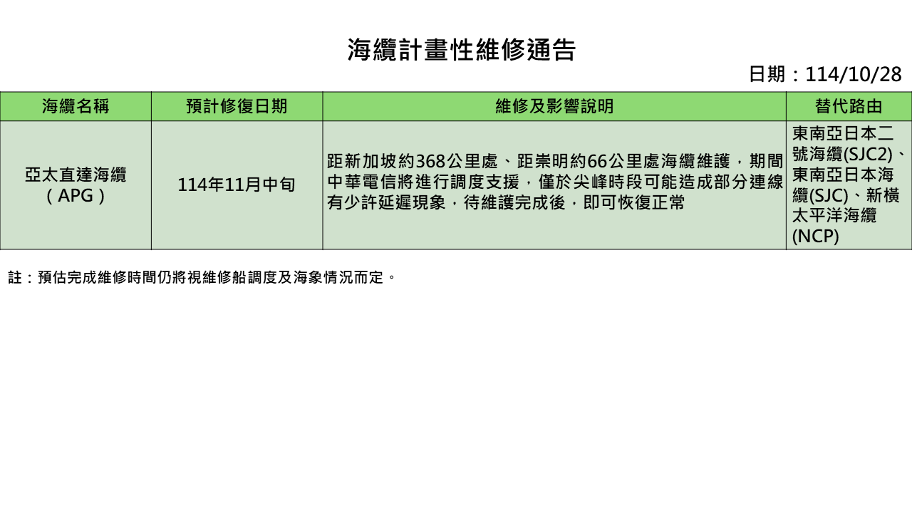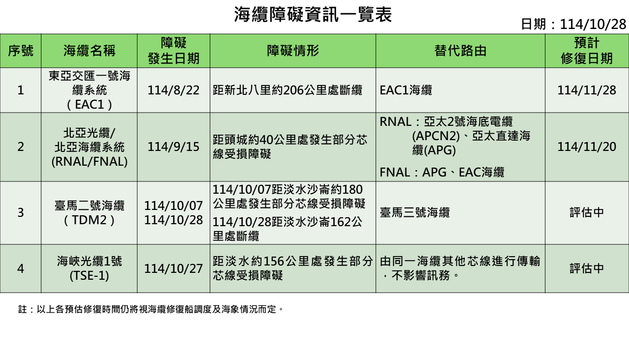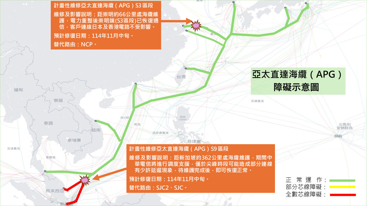 六、亞太直達海纜障礙示意圖:中華電信公告https://www.hinet.net/notifyPage.html?id=199ebf6baa9000001134&type=0