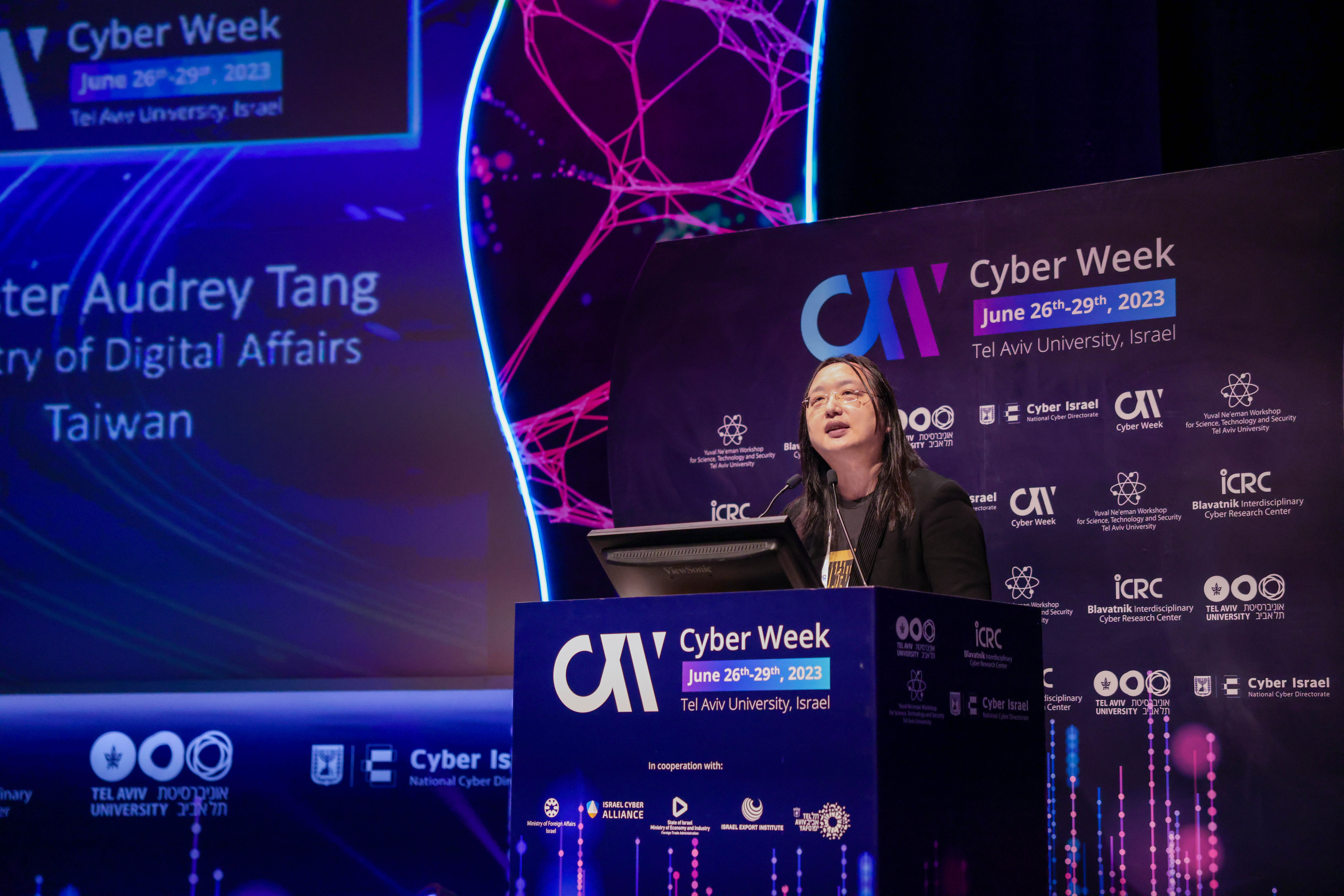 數位發展部唐鳳部長率團出訪以色列,於當地時間27日參與「2023網路安全週」(Cyber Week 2023)國際論壇活動。唐鳳部長受邀在大會主場(Main Plenary)演說,向與會國際資安專家分享我國面對複合式網攻、捍衛民主的經驗。